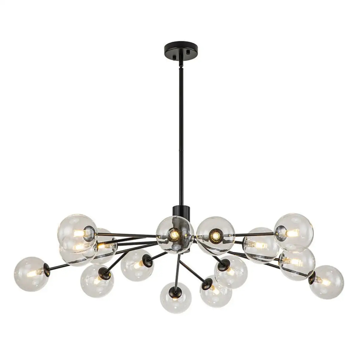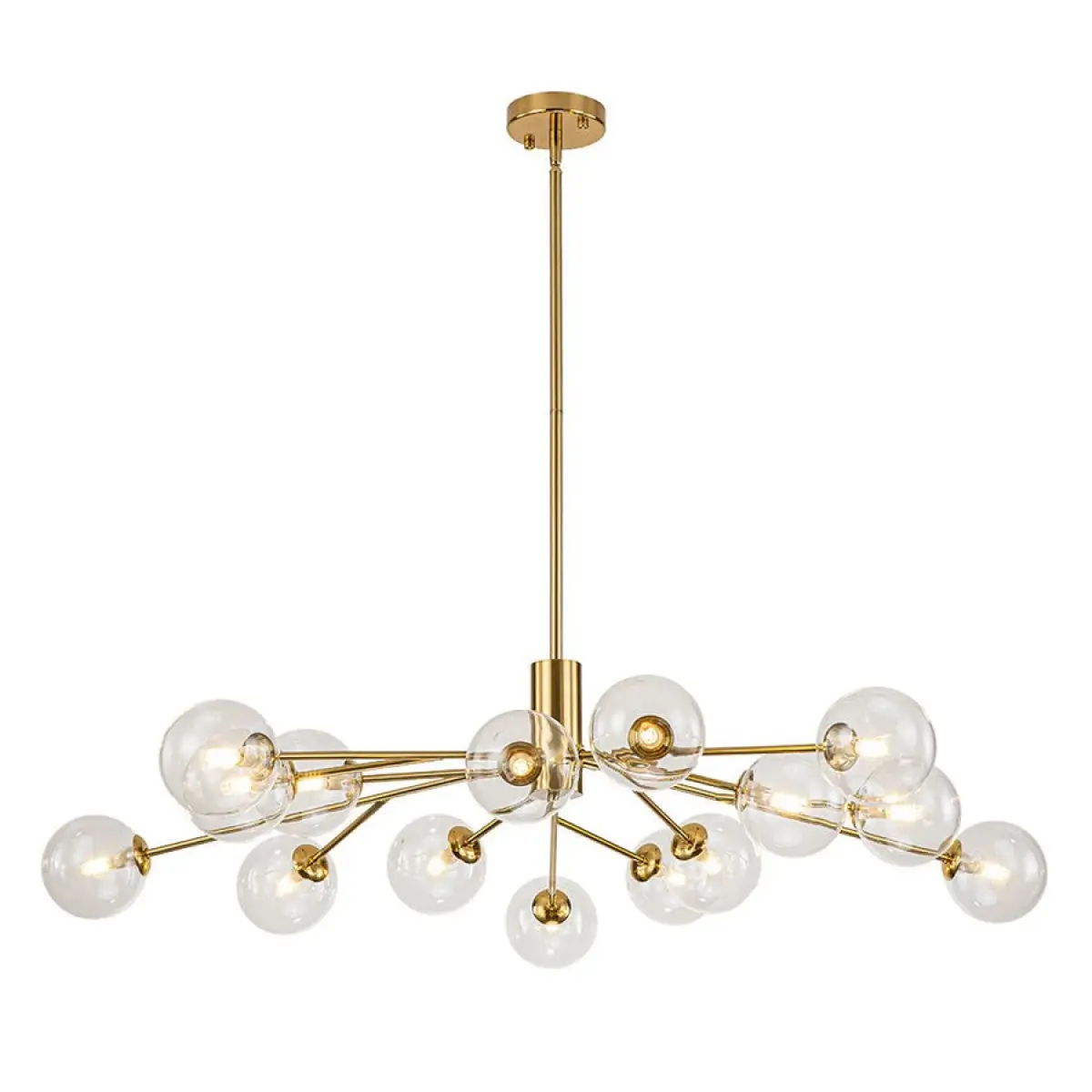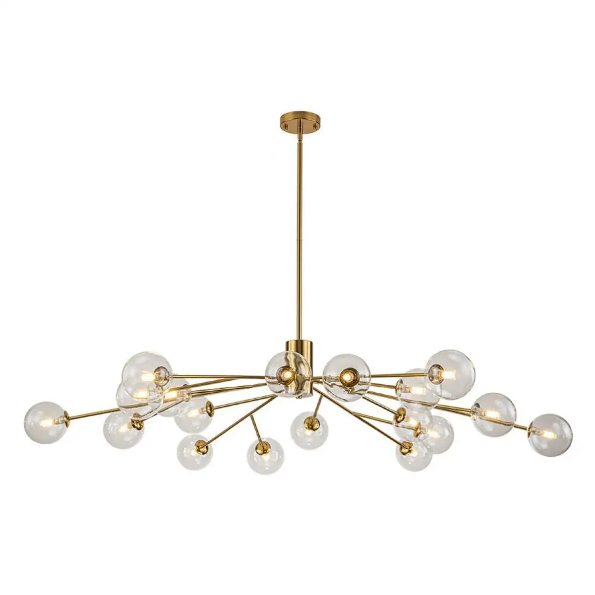Upgrade your Sputnik light fixture with a sophisticated branching structure, our Mid Century chandelier blooming beautifully as a flourishing tree in your space. The transparent glass globe shade adds an airy and ethereal bubble-like appearance to this Sputnik chandelier. Available in luxurious gold or sleek matte black finish, this glass globe Sputnik chandelier will elevate the style of your living room, dining room, foyer, hall, entryway, or bedroom. Infuse a fresh and impactful statement to your home decor with this exquisite bubble branch chandelier.